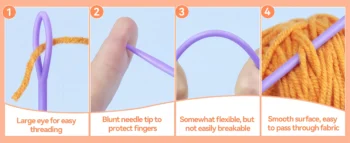 【Ergonomic Design】: These knitting needles feature blunt tips to prevent damage to fabric and finger injuries, while the large eye makes threading easy. The smooth surface ensures the needles pass smoothly through fabric, making them ideal for a variety of craft activities.