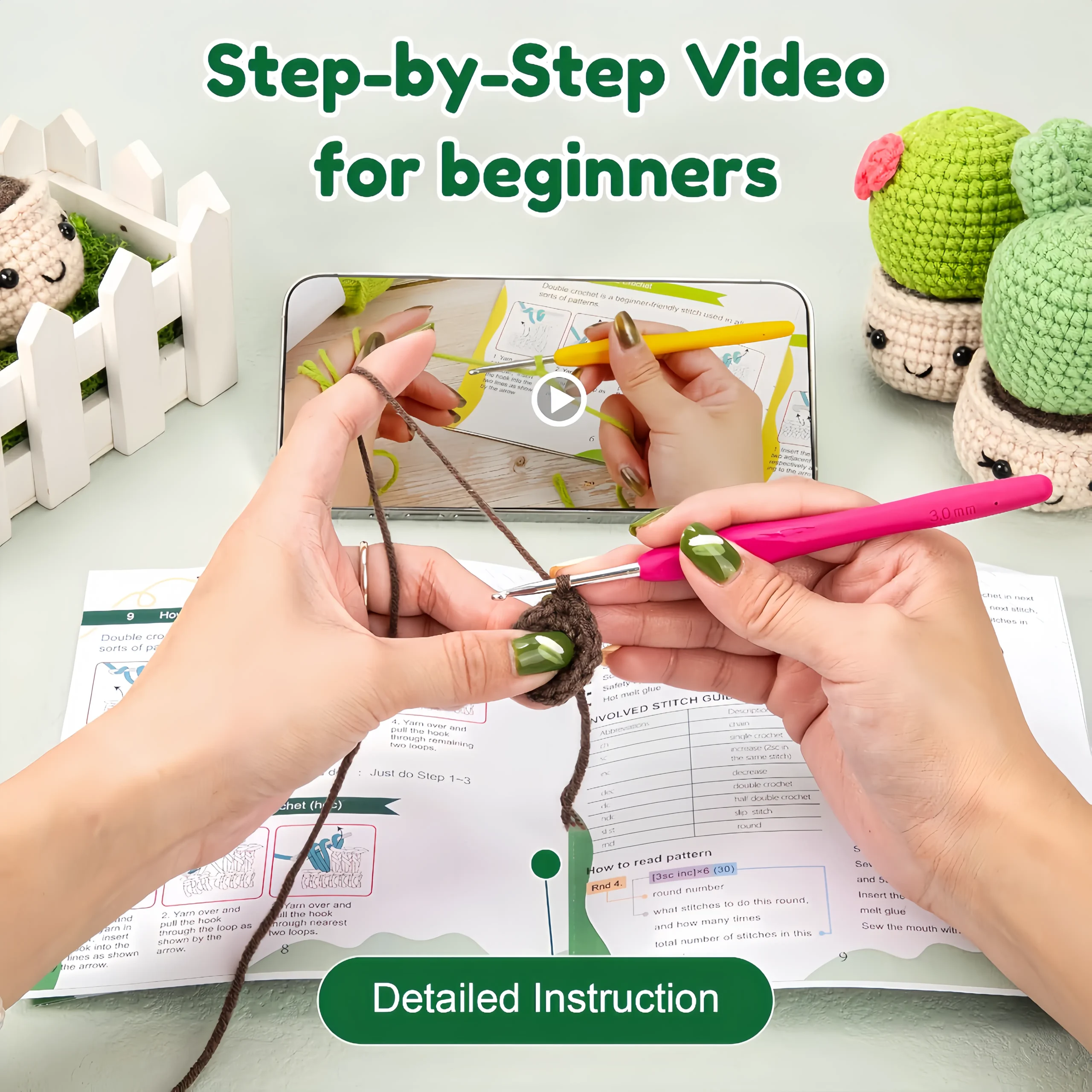 【Detailed Tutorials】: The easy crochet kit for beginners includes step-by-step full-color instructions and detailed video tutorials (right and left handed people friendly). Stitching of crochet are clearly shown in the teaching videos, easy to follow